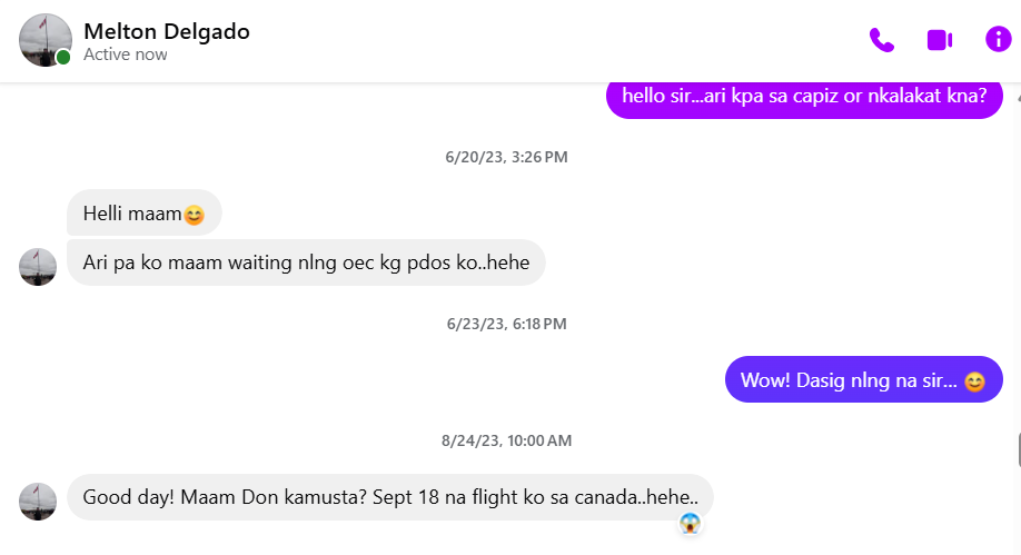 “Kung sa visa po, ok na po. Flight ko na po this 29th.”